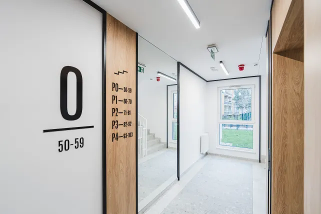 Budynek liczy pięć kondygnacji nadziemnych oraz jedną podziemną, w której znajduje się garaż podziemny, komórki lokatorskie oraz pomieszczenia techniczne. Architektura obiektu utrzymana jest w nowoczesnej, prostej formie z balkonami oraz jasną elewacją wzbogaconą kontrastującymi detalami. Wygodną komunikację zapewniają dwie klatki schodowe i windy dostosowane do potrzeb osób o ograniczonej mobilności.